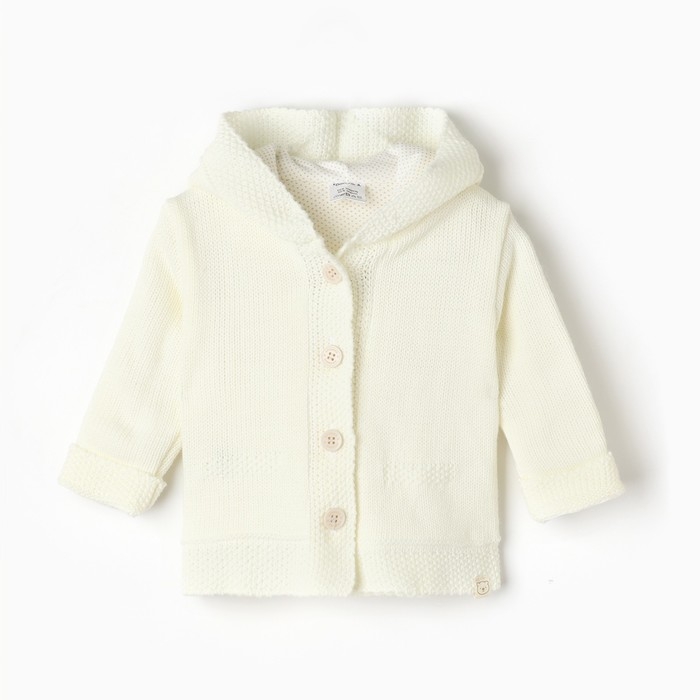 Джемпер вязаный Крошка Я с капюшоном рост 92-98 см, молочный