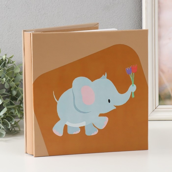 Фотоальбом на 100 фото 10х15 см "Слонёнок голубой с тюльпанами" в коробке 23,5х4х22,5 см