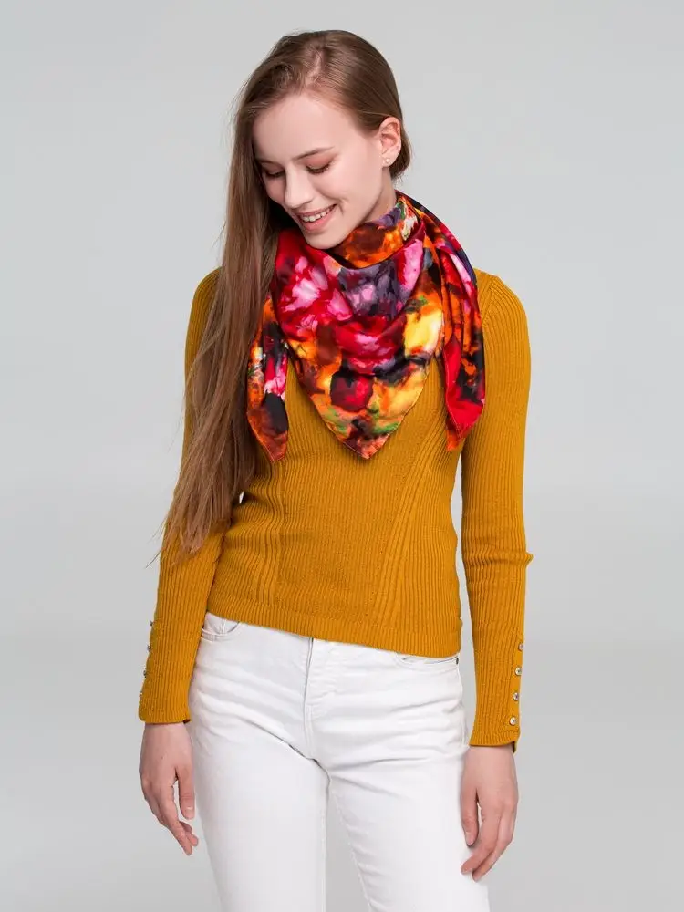 - размер и легкая текстура платка позволяют завязывать его в разные оригинальные комбинации и сочетать с другими предметами гардероба
