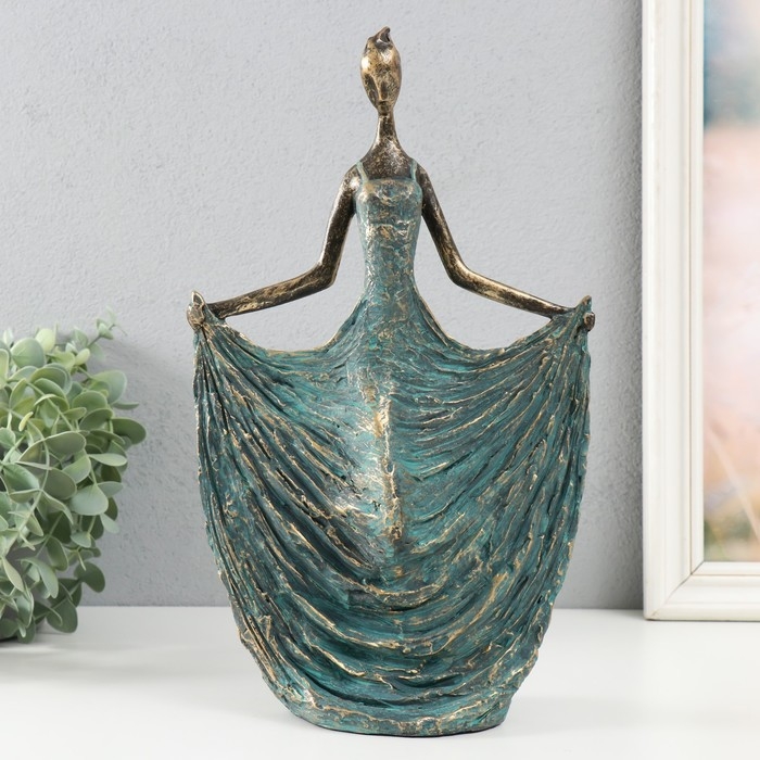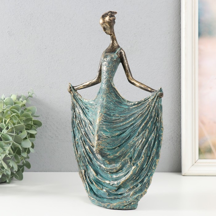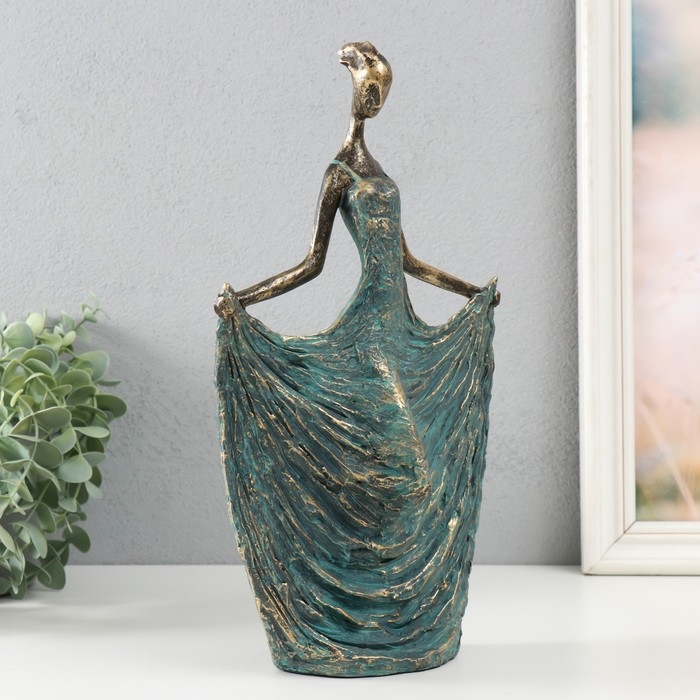 Сувенир полистоун "Танцовщица в зелёно-голубом платье. Балеро" под металл 18,6х9,6х31,6 см