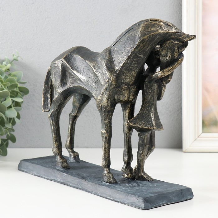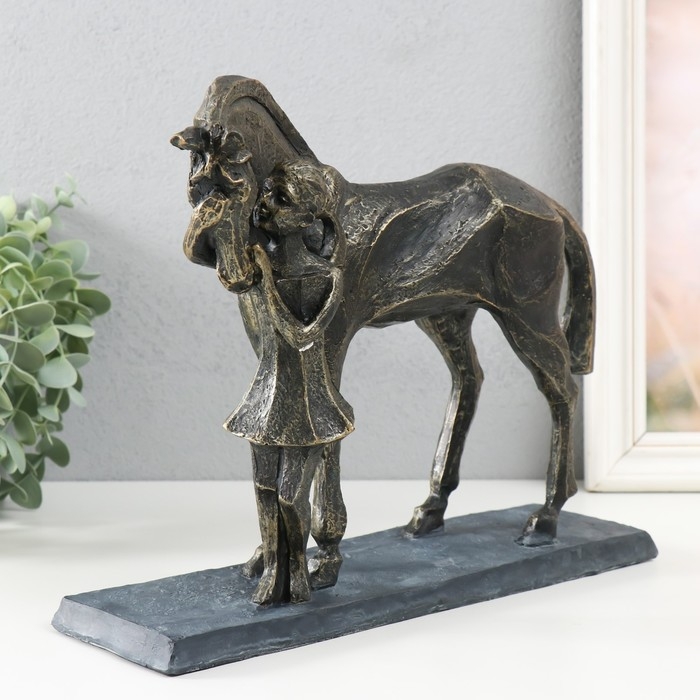 Сувенир полистоун "Девочка с конём" под металл 23,5х8,7х29,5 см