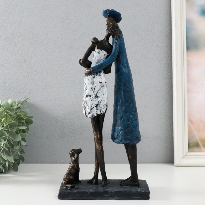 Сувенир полистоун "Парочка на прогулке с собакой" под металл 16,4х8х34,7 см