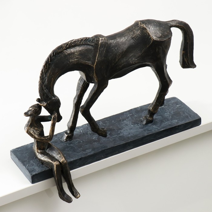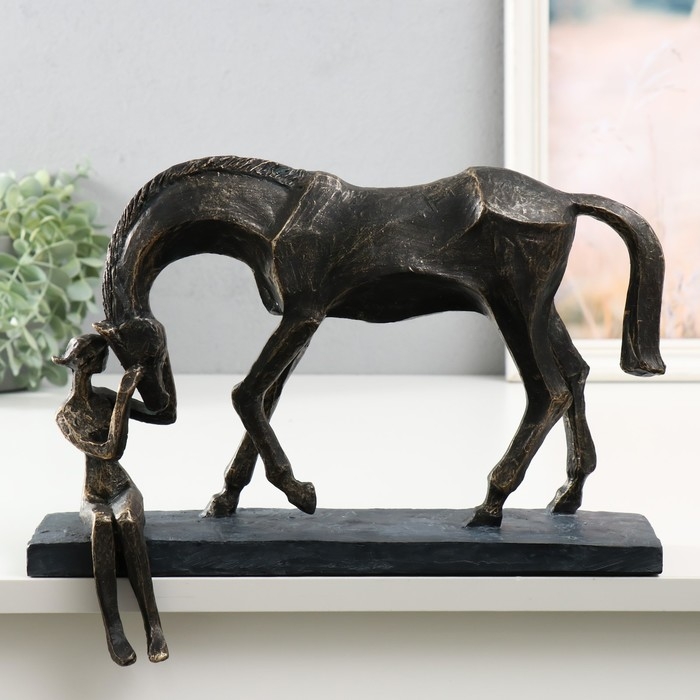 Сувенир полистоун на полку "Девушка с конём" под металл 32,6х11х25,2 см