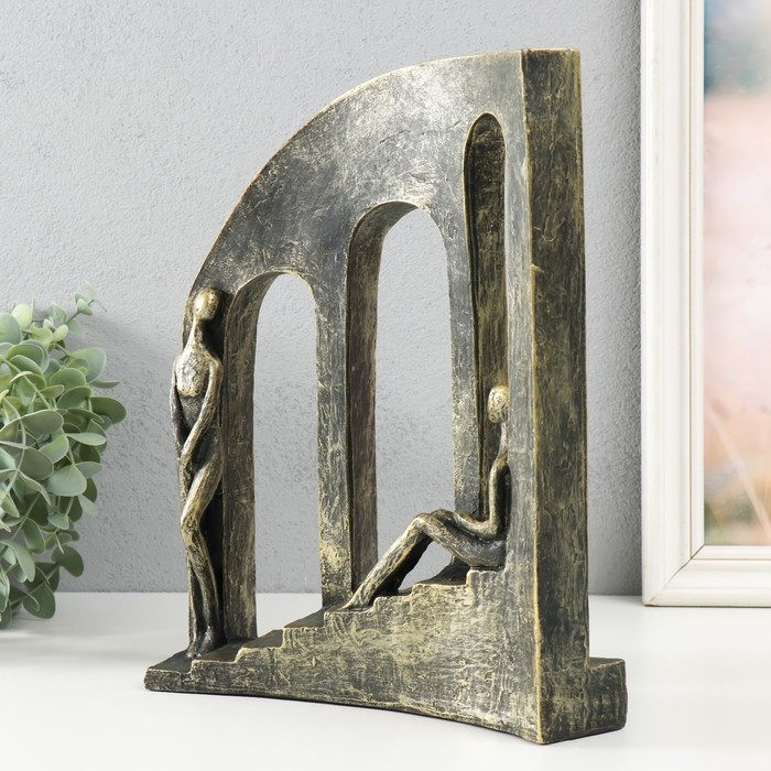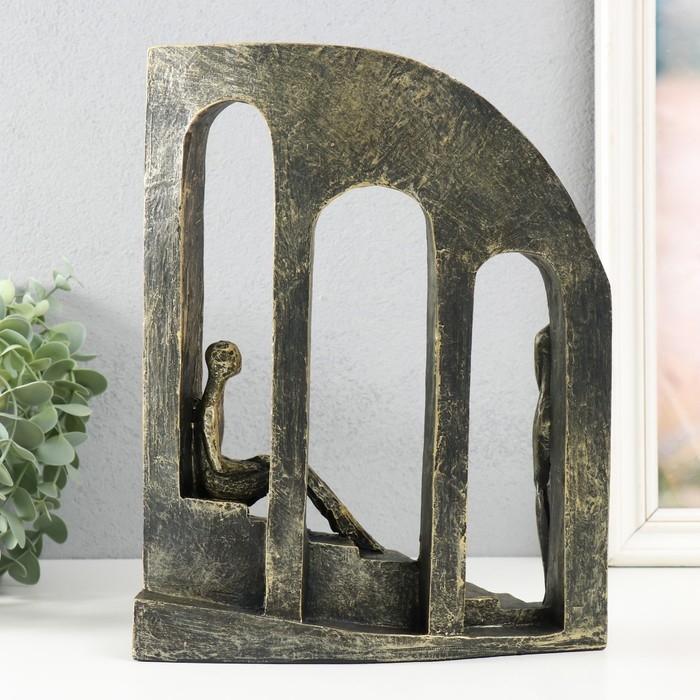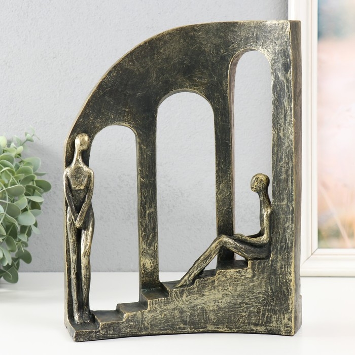 Сувенир полистоун "Двое на лестнице у окон" под металл 22,7х7,7х28,7 см