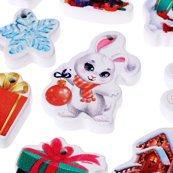 Ёлочные игрушки на новый год «Новогоднее настроение», набор деревянных подвесок