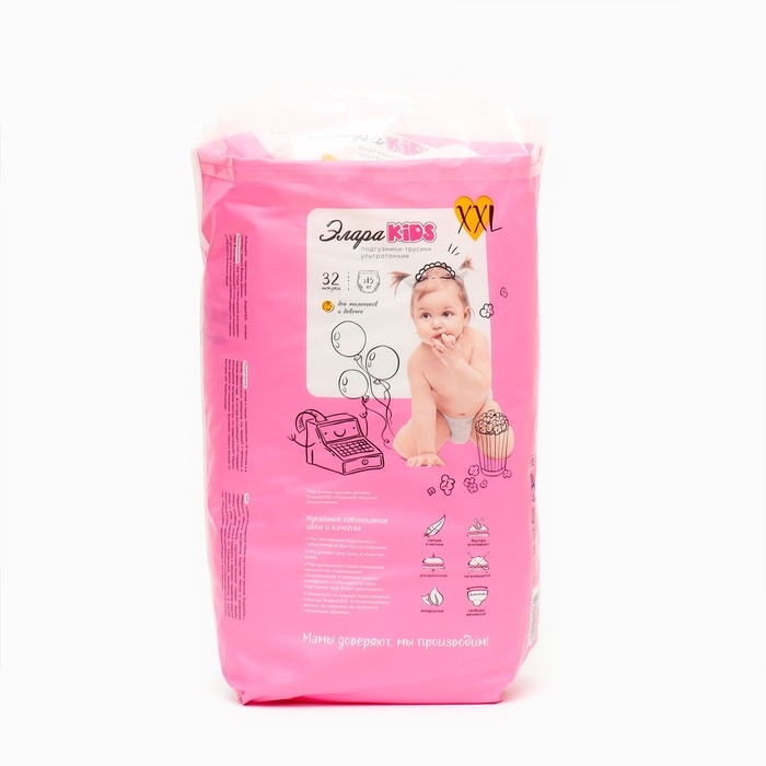 Подгузники-трусики детские дневные ультратонкие ЭлараKIDS размер 6 , XXL 32 шт
