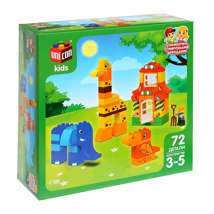 - В наборе 72 детали разных форм и размеров. Из них можно собрать весь сюжет, изображённый на коробке.