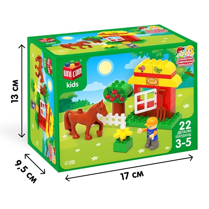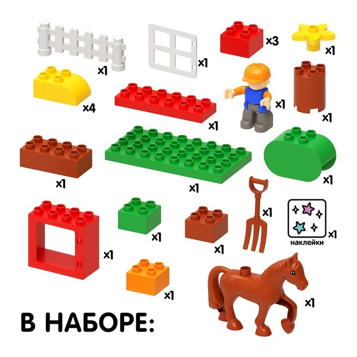 - В наборе 22 детали разных форм и размеров. Из них можно собрать весь сюжет, изображённый на коробке.