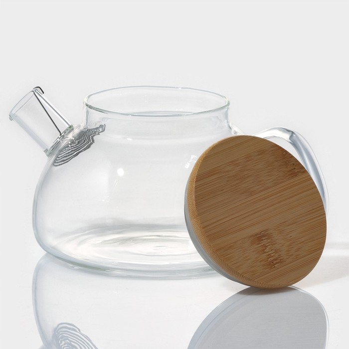 Чайник заварочный стеклянный с бамбуковой крышкой и металлическим фильтром BellaTenero «Эко», 600 мл, 18×12×10 см