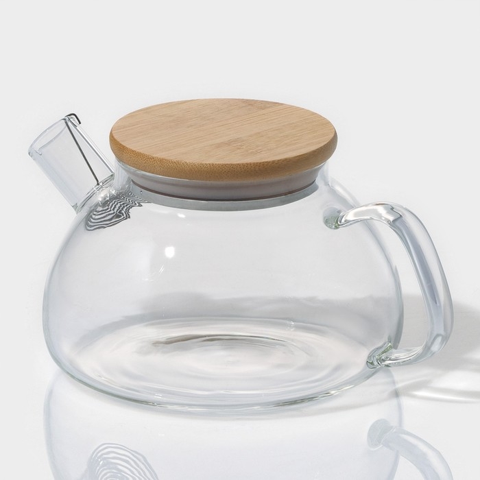 Чайник заварочный стеклянный с бамбуковой крышкой и металлическим фильтром BellaTenero «Эко», 1,2 л