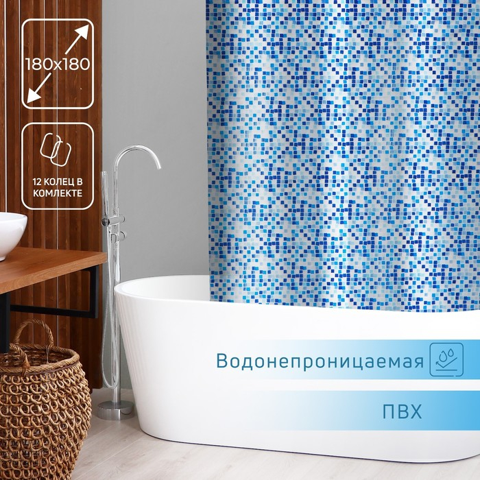 Штора для ванной Доляна «Плитка», 180×180 см, PVC