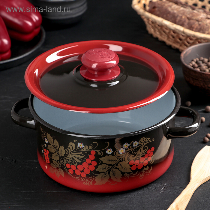 Кастрюля эмалированная, 2 л, ручка МИКС