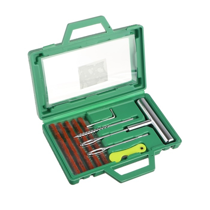 Ремкомплект-специальный комплект инструментов и расходных материалов, который должен быть у вас в багажнике, позволит вам сэкономить время и деньги. Набор для ремонта бескамерных шин просто использовать, так что вам даже необязательно иметь практический опыт по ремонту вашего автомобиля. Ремкомплект обладает всеми необходимыми элементами, которые нужны для быстрой и качественной починки колес. Небольшой набор легко поместится в бардачок или багажник, что позволит вам применять его при необходимости даже на дороге.