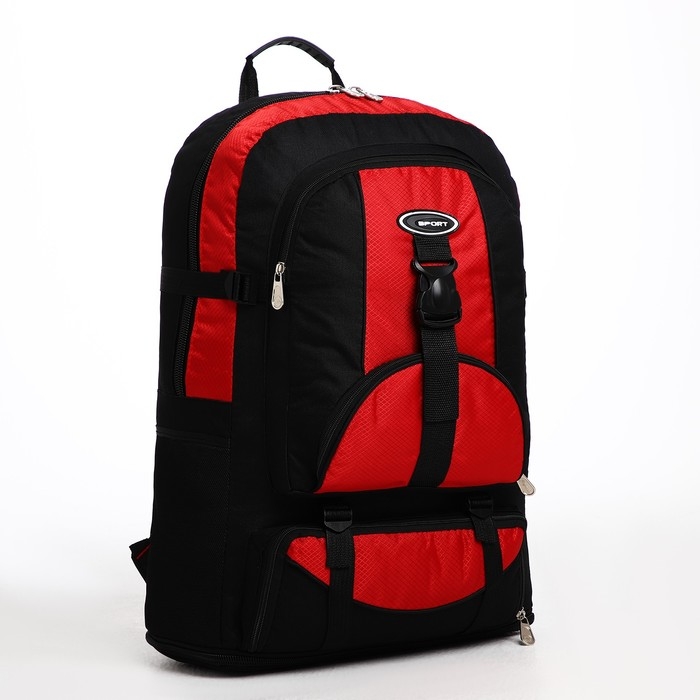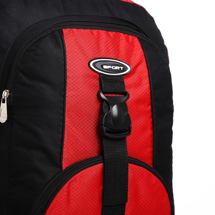 Рюкзак туристический на молнии, 37 л, 5 наружных карманов, цвет чёрный/красный