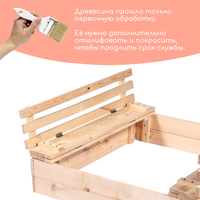 Песочница детская деревянная, с крышкой, 100 × 100 × 18 см, без покраски, лавочки (2 шт.), Greengo