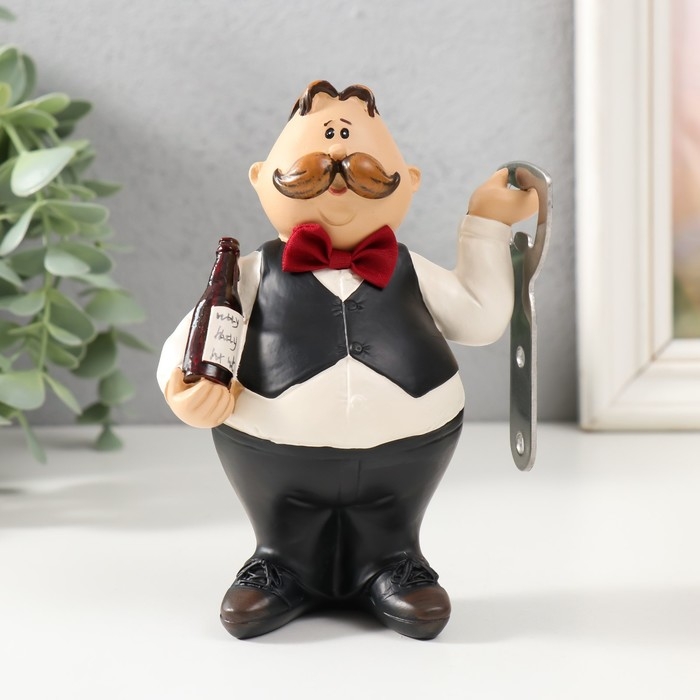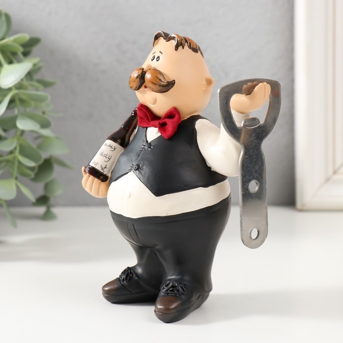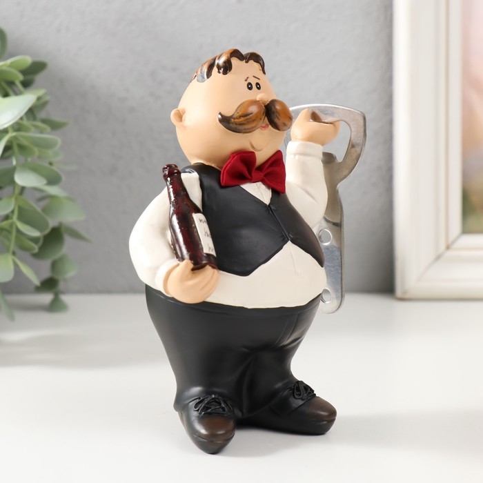Сувенир полистоун с открывашкой "Официант с бутылкой вина" 9,7х6,4х13,8 см