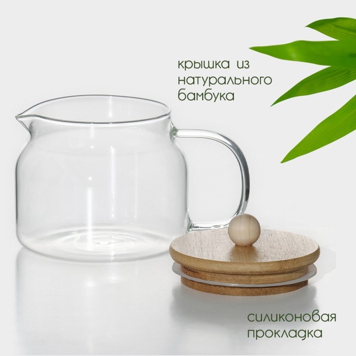 Чайник заварочный стеклянный с бамбуковой крышкой BellaTenero «Эко», 400 мл, 13,5×10×10,5 см