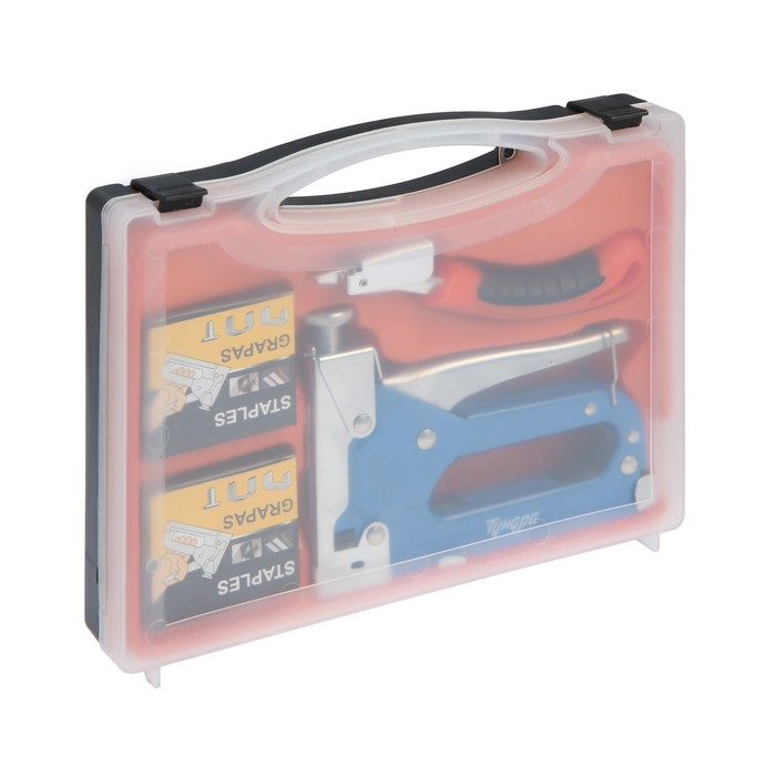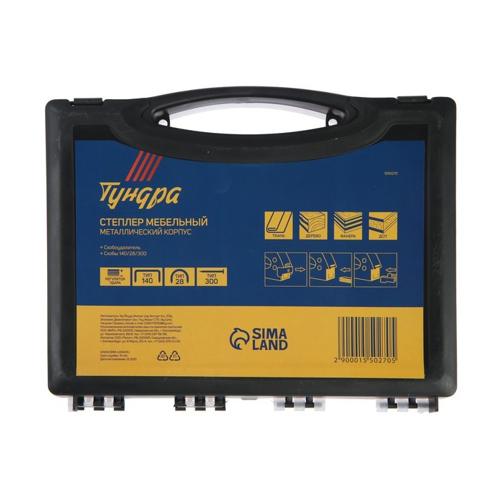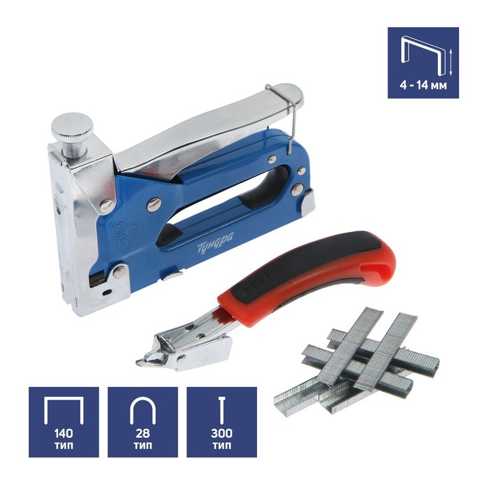 Степлер мебельный в кейсе ТУНДРА, типы скоб 140/28/300, 4 - 14 мм + скобоудалитель, скобы