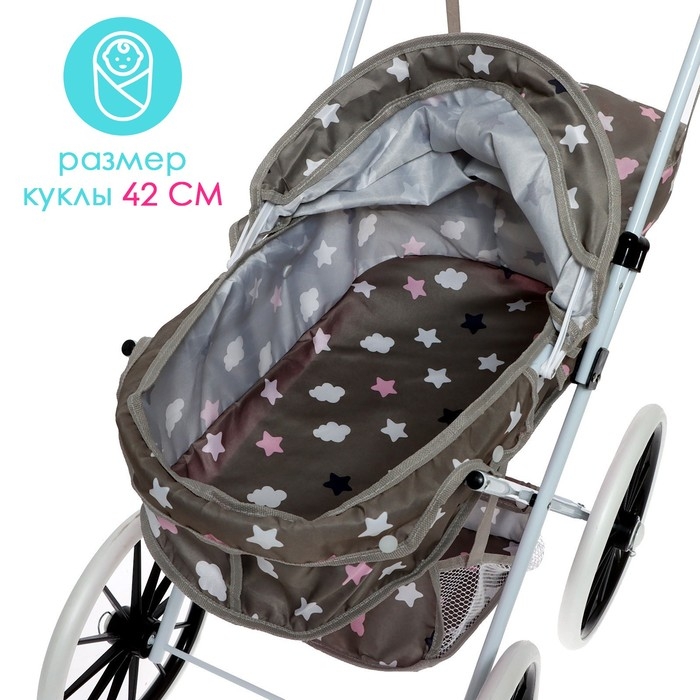 Коляска для кукол универсальная, с корзиной, сумкой, металлический каркас