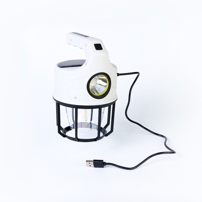 Фонарь кемпинговый аккумуляторный, солнечная батарея, 12 х 13.5 см, от USB, чёрный