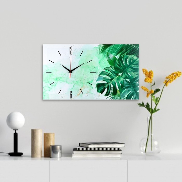Часы-картина настенные, интерьерные "Листья", 35 х 60 см, на холсте, бесшумные