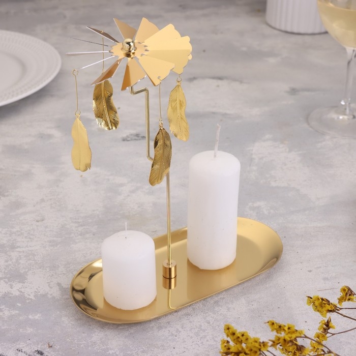Подсвечник "Карусель с перьями", золотая, металл, 8,5 х 18 см