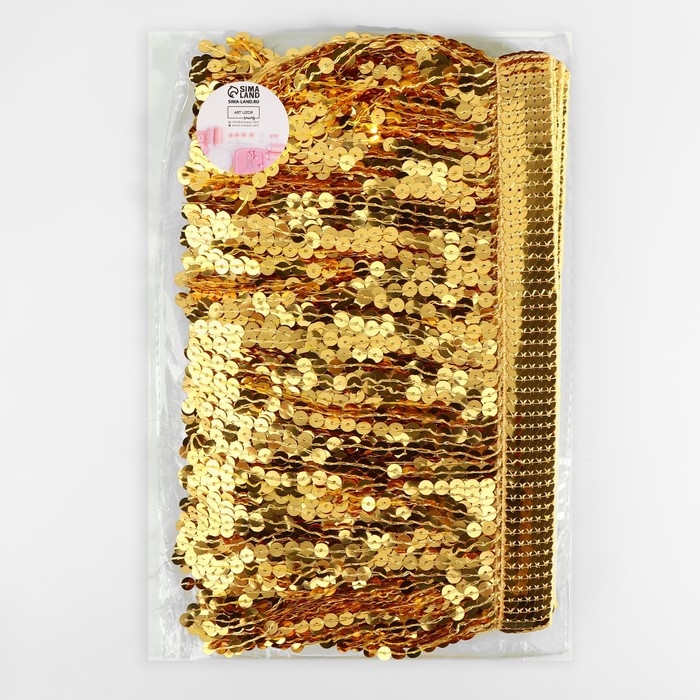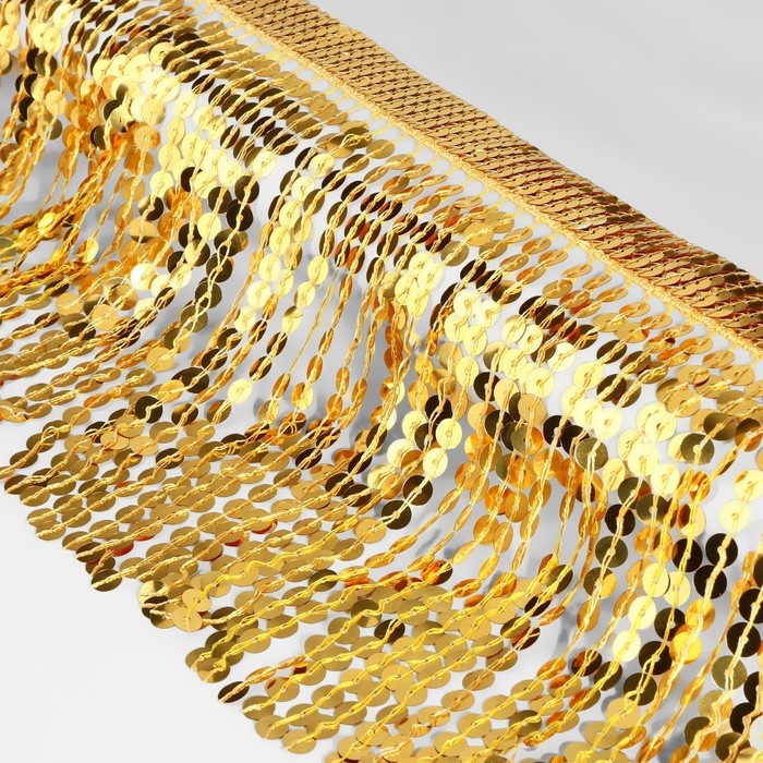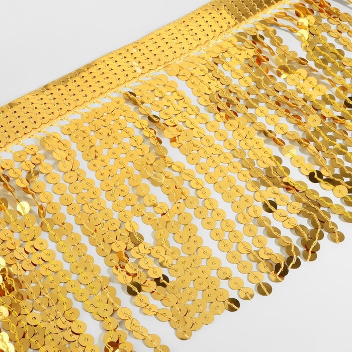 Тесьма с пайетками «Бахрома», d = 6 мм, 16 см, 4,5 ± 0,5 м, цвет золотой