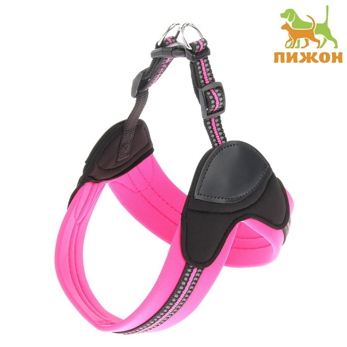 Шлейка супермягкая со светоотражающей прошивкой, обхват 48-54 см, розовая