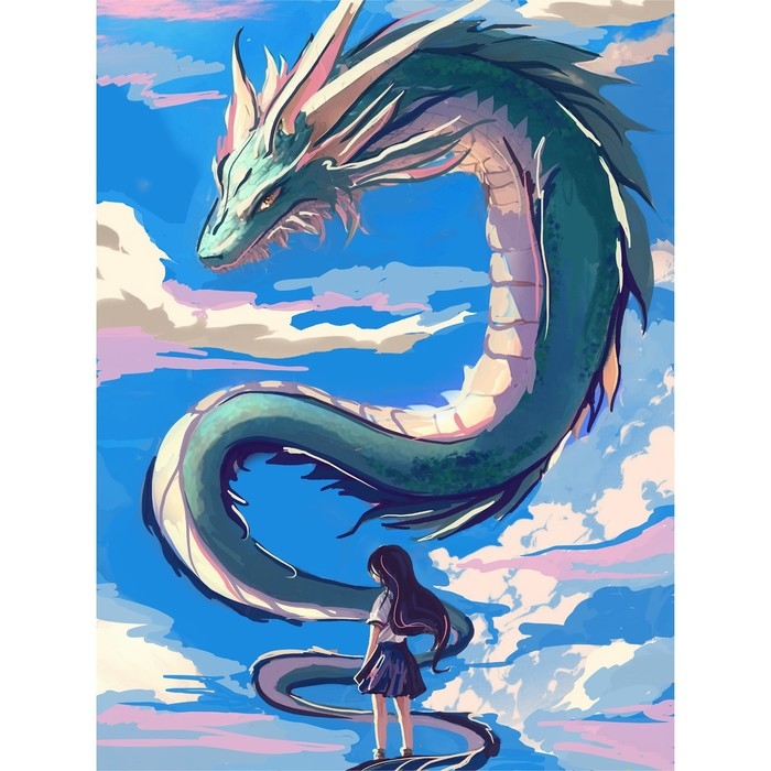 Алмазная вышивка с частичным заполнением на холсте «Девочка и дракон», 30 х 40 см