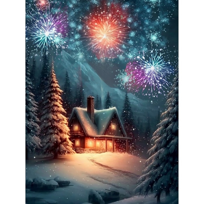 Новогодняя алмазная мозаика с частичным заполнением на холсте «Новый год в лесу», 30 х 40 см