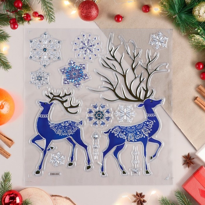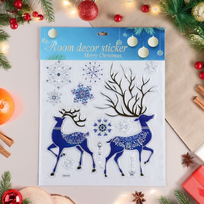 Наклейки на окна "Новогодние" пара оленей, 38х30 см