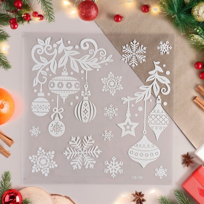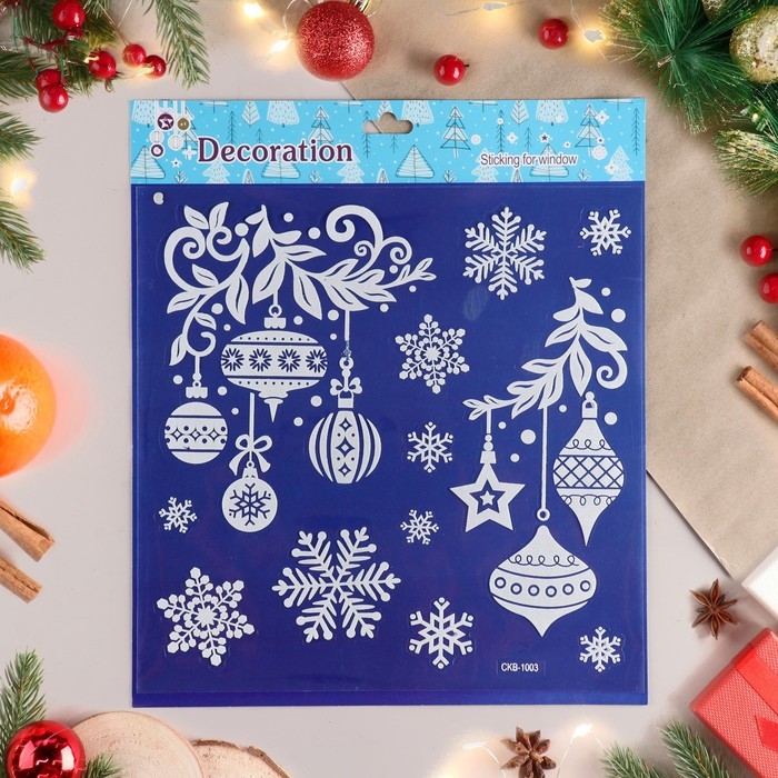 Наклейки на окна "Новогодние" снежинки, игрушки, 38х30 см