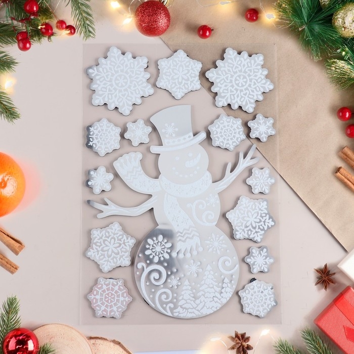 Наклейки на окна "Новогодние" снеговик, 48х24 см