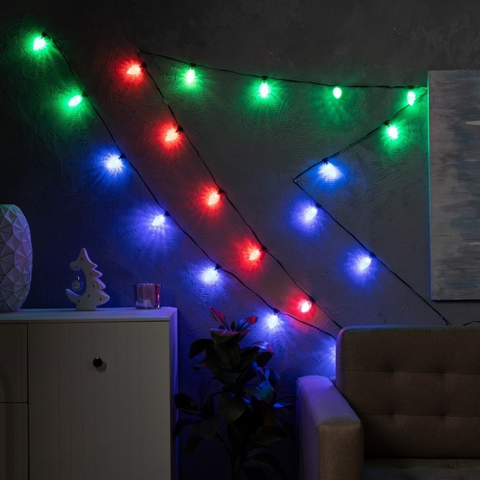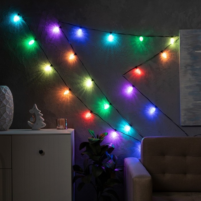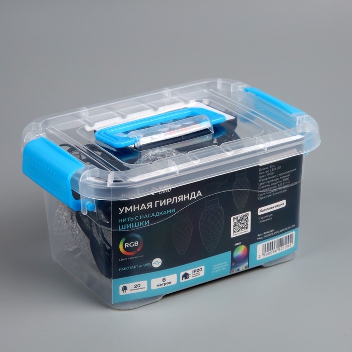 Умная гирлянда «Нить» 6 м с насадками «Шишки», IP20, тёмная нить, 20 LED, свечение RGB, USB