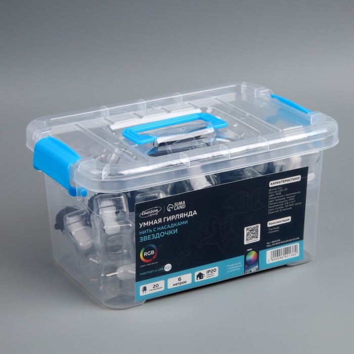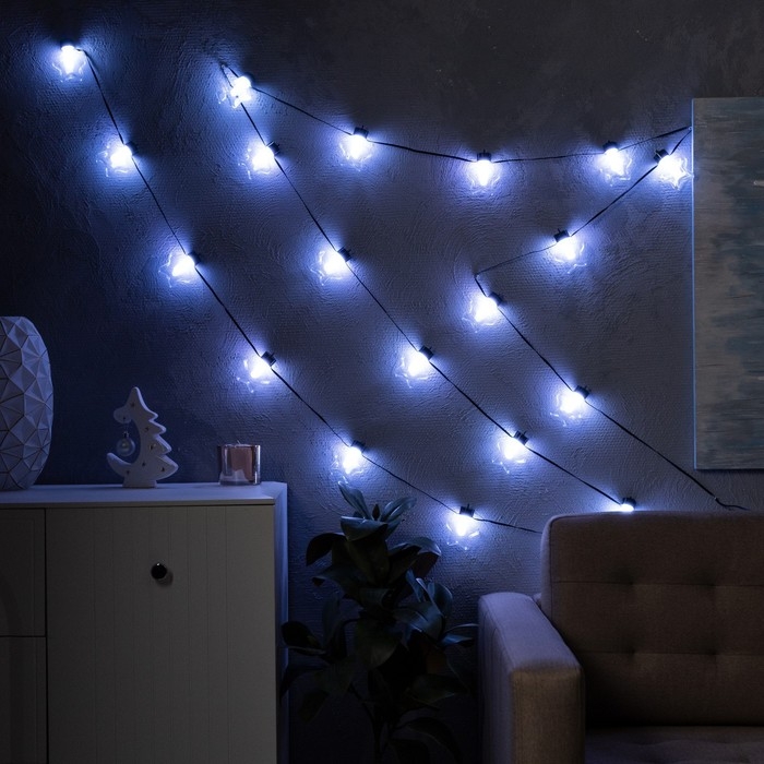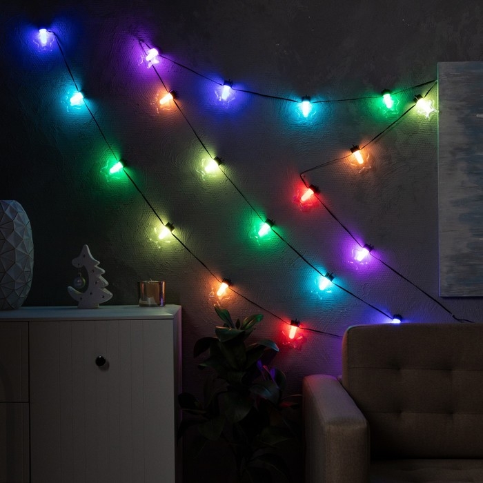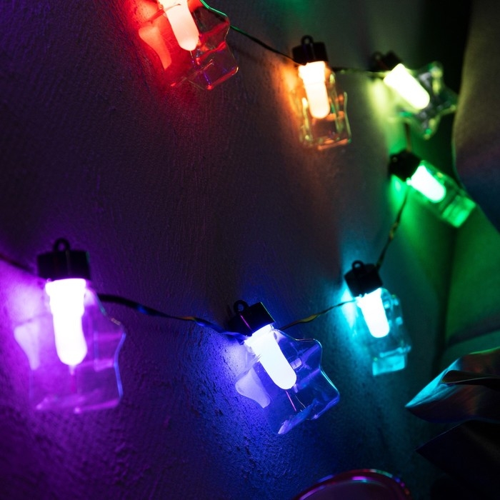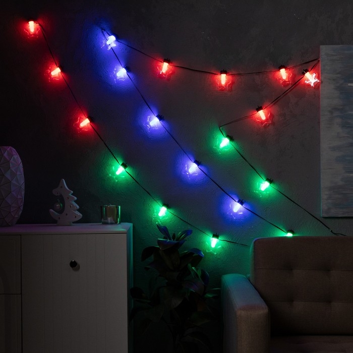 Умная гирлянда «Нить» 6 м с насадками «Звёздочки», IP20, тёмная нить, 20 LED, свечение RGB, USB