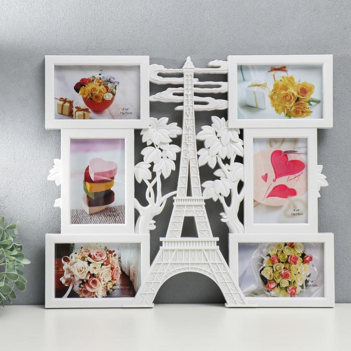 Фоторамка на 6 фото 10х15 см "Эйфелева башня в облаках" белая 41,5х48х2,5 см