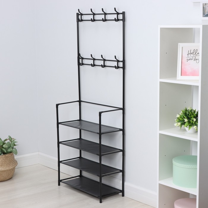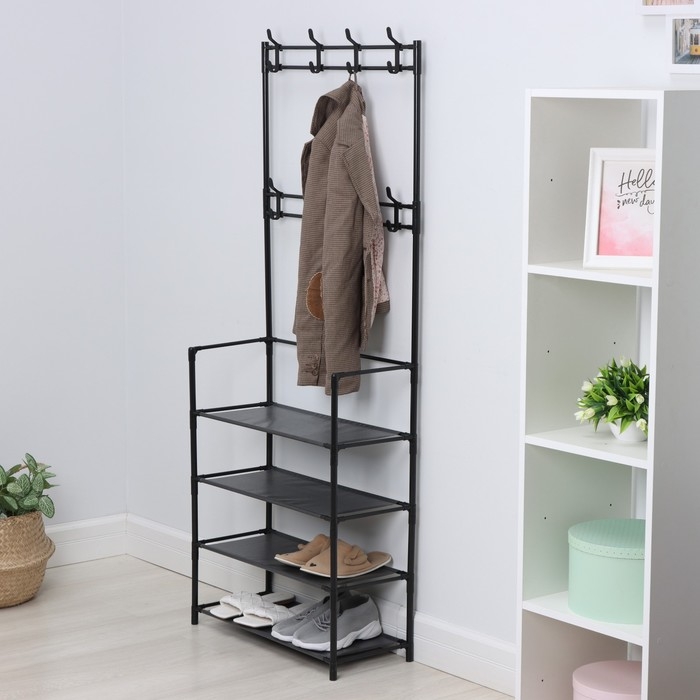 Вешалка - стойка напольная для одежды LaDо́m, полки для обуви, 4 яруса, 60×26×155 см, цвет чёрный
