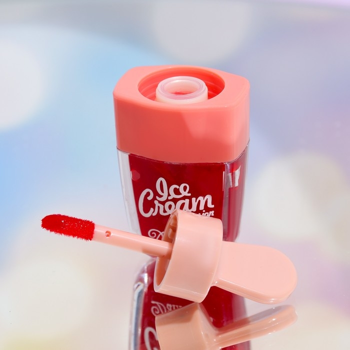 Тинт для губ в упаковке в виде маленького мороженого, обладает нежной, тающей текстурой и очень насыщенным оттенком, который заметно освежает лицо и придаёт губам яркость и выразительность. Он ухаживает за нежной кожей губ, насыщая её необходимыми минералами и витаминами.