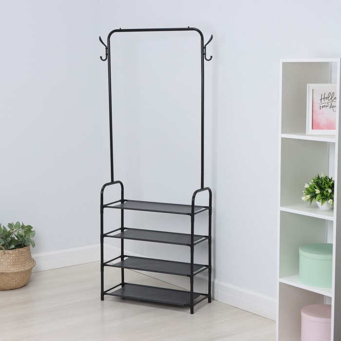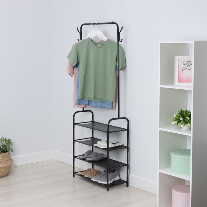 Вешалка - стойка напольная для одежды LaDо́m, с полками для хранения, 4 яруса, 60×26×160 см, цвет чёрный