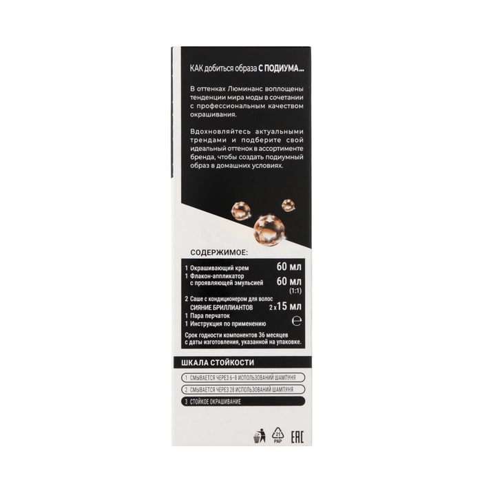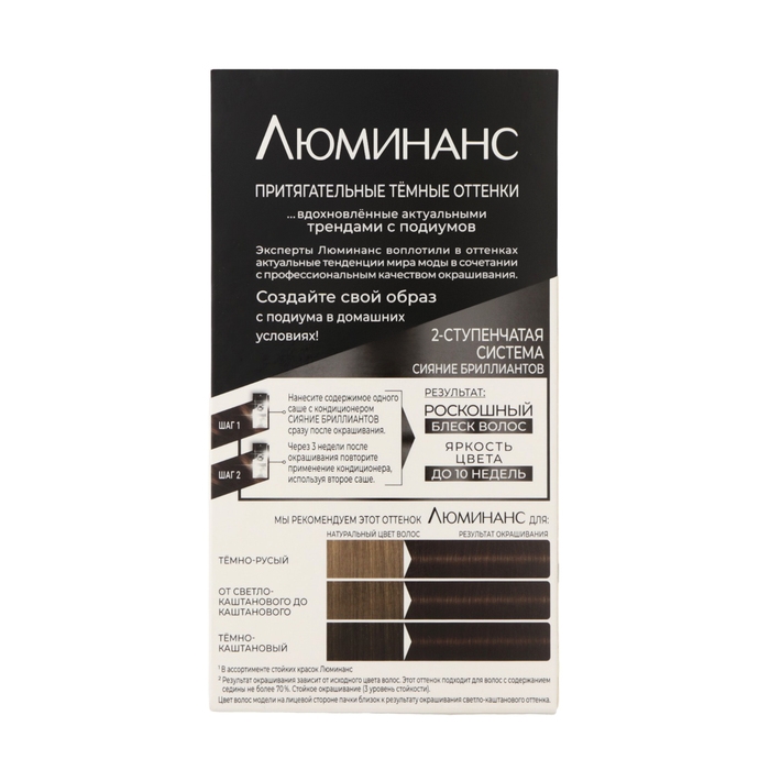 Формула Люминанс с 2-ступенчатой системой сияние бриллиантов позволяет добиться восхитительной яркости цвета до 10 недель.