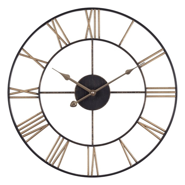 Часы настенные, интерьерные, d-47.5 см, корпус чёрный с бронзой
