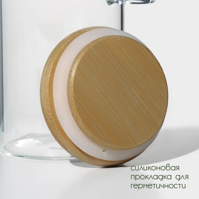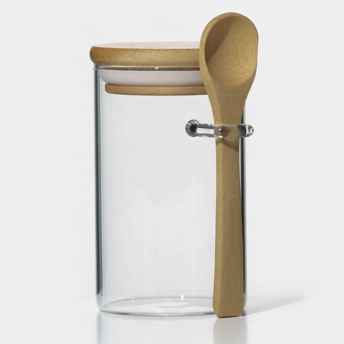 Банка стеклянная для хранения сыпучих продуктов с ложкой BellaTenero «Эко», 280 мл, 7×11 см, с бамбуковой крышкой