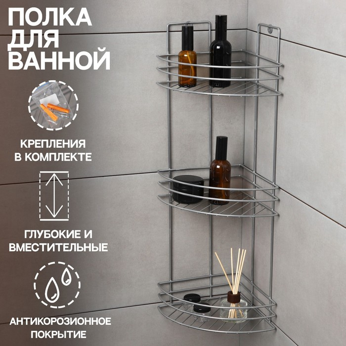 Полка угловая 3-х ярусная, 11×61,5 см, цвет хром