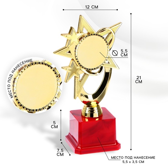 Наградная фигура «Звезда» B, подставка пластик красная, 21 х 12 х 7,5 см