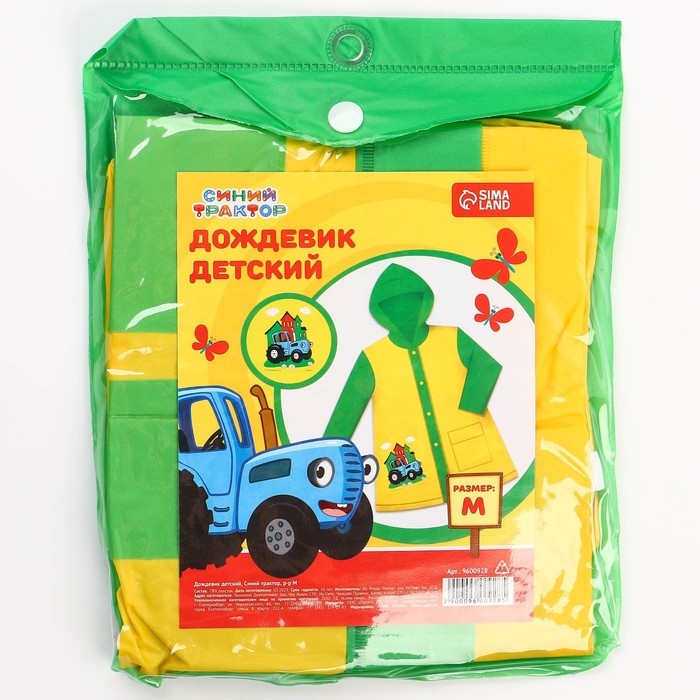 Дождевик детский, размер M, 100-110 см, Синий трактор