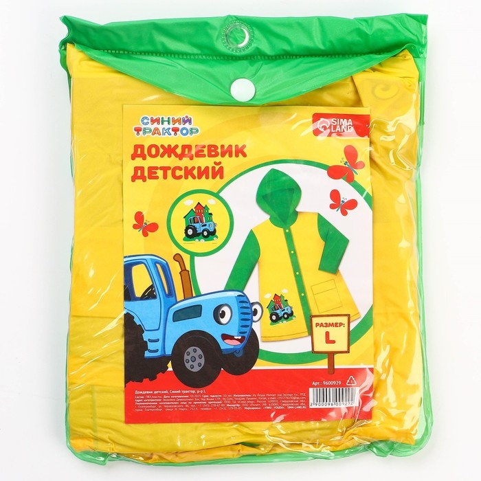 Дождевик детский, размер L, 110-120 см , Синий трактор