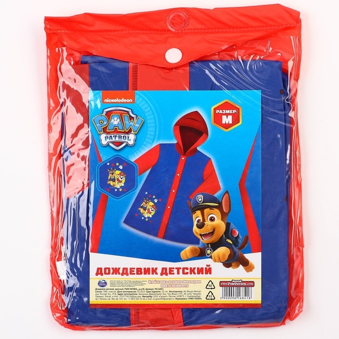 Дождевик детский, размер M, 100-110 см, Щенячий патруль
