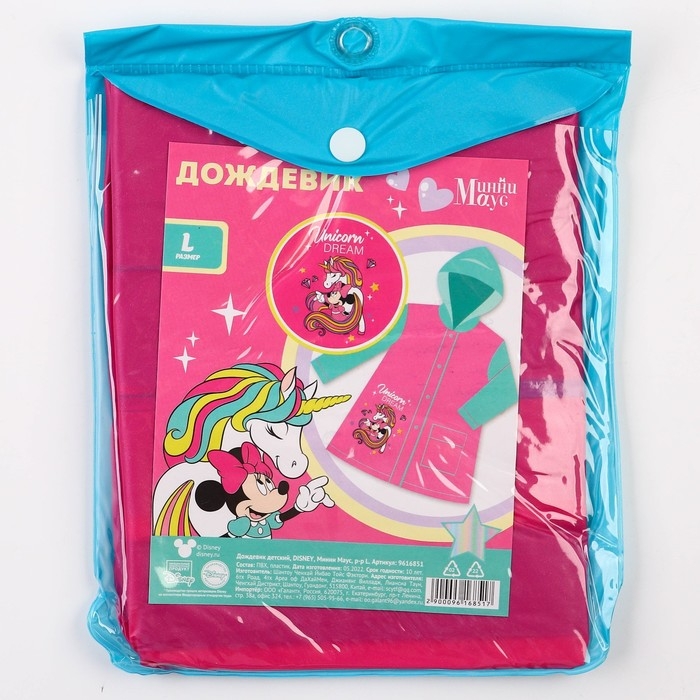 Дождевик детский, размер L, 110-120 см , Минни Маус