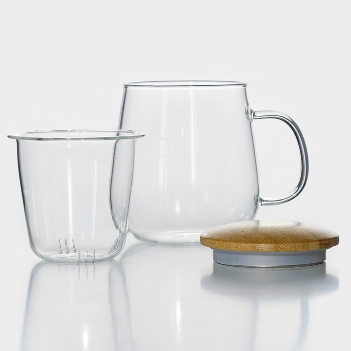 Кружка стеклянная для заваривания со стеклянным ситом «Эко», 500 мл