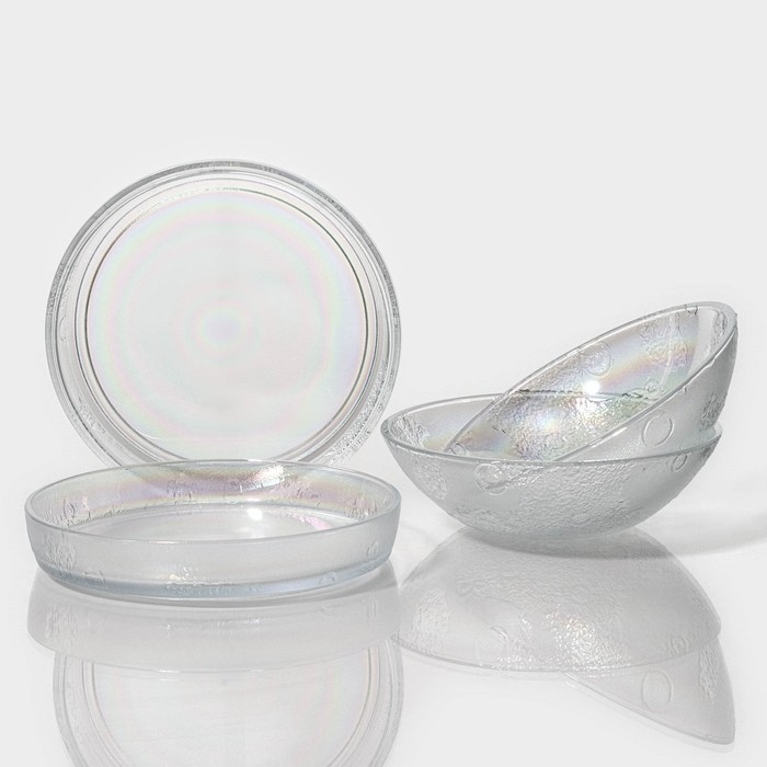Набор тарелок стеклянных «Космос», 4 предмета: 2 тарелки 18,5×5,5 см, 2 тарелки 19,8×3,5 см, цвет перламутровый